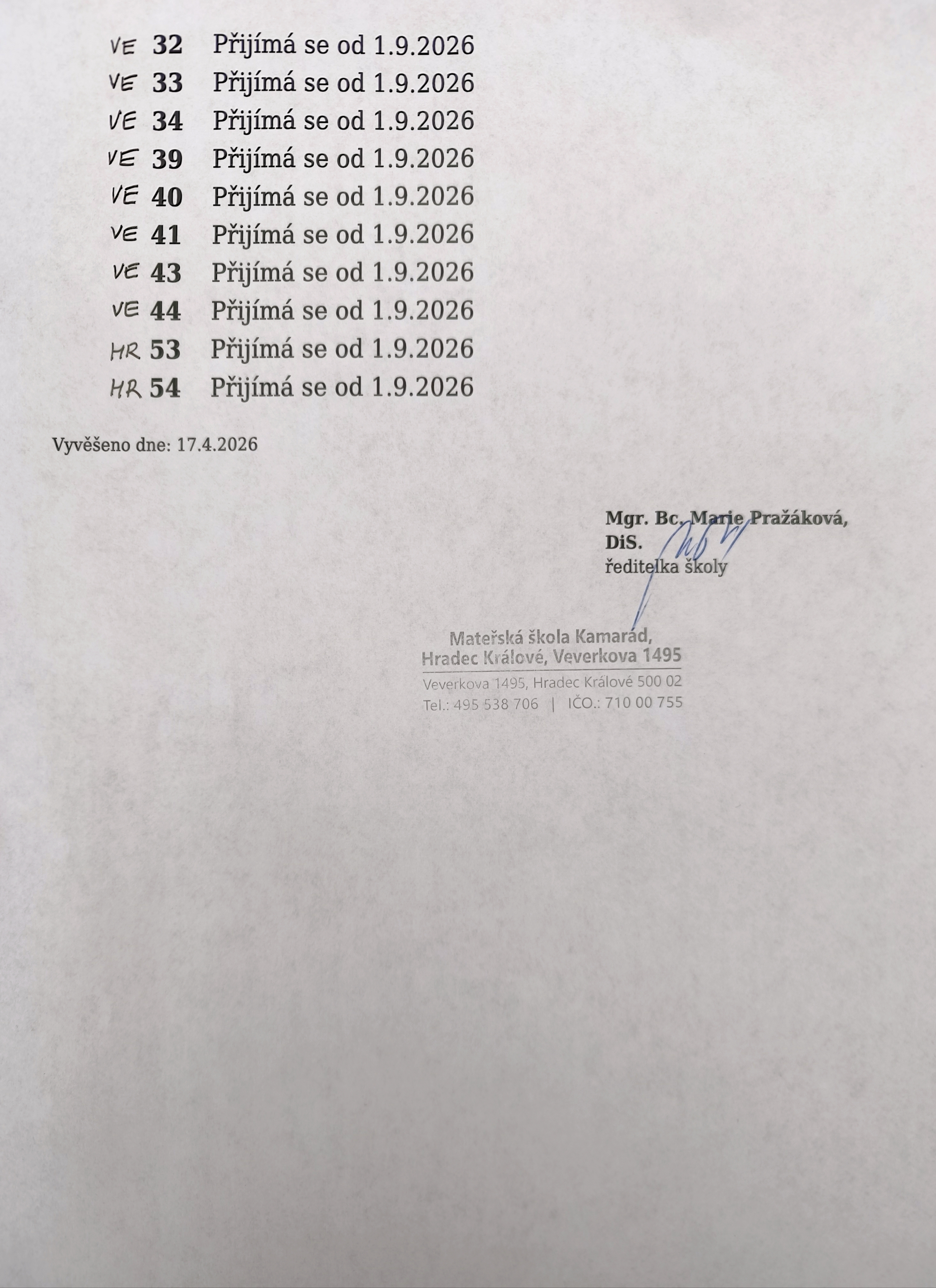 Seznam přijatých dětí od 1. 9. 2026Seznam přijatých dětí od 1. 9. 2026 - strana 2.