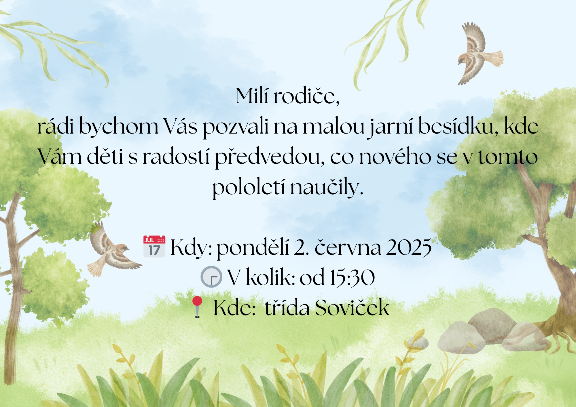 Děkujeme Vám za spolupráci a budeme se těšit na společně strávený příjemný čas besídky :)