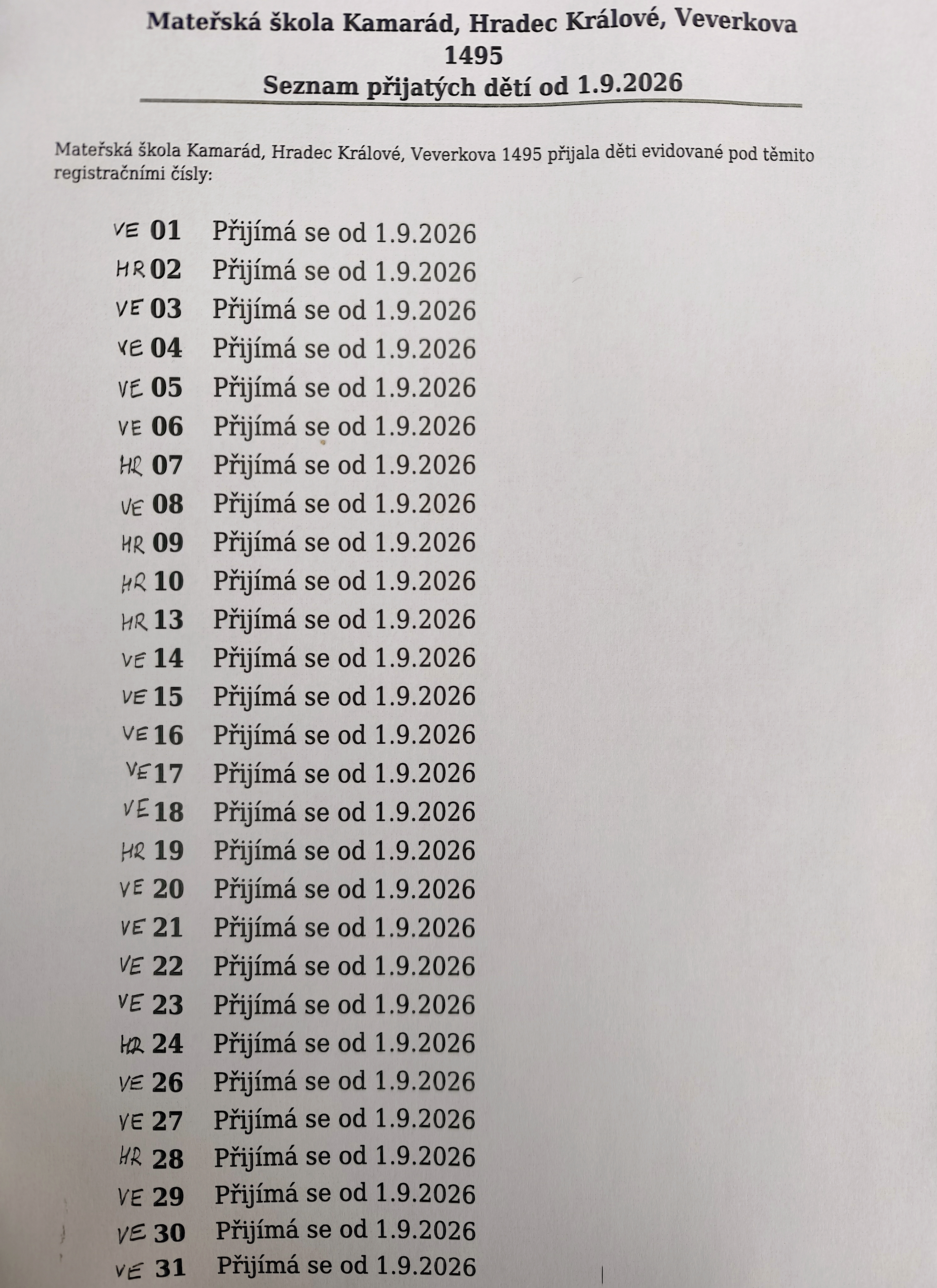 Seznam přijatých dětí od 1. 9. 2026Seznam přijatých dětí od 1. 9. 2026 - strana 2.