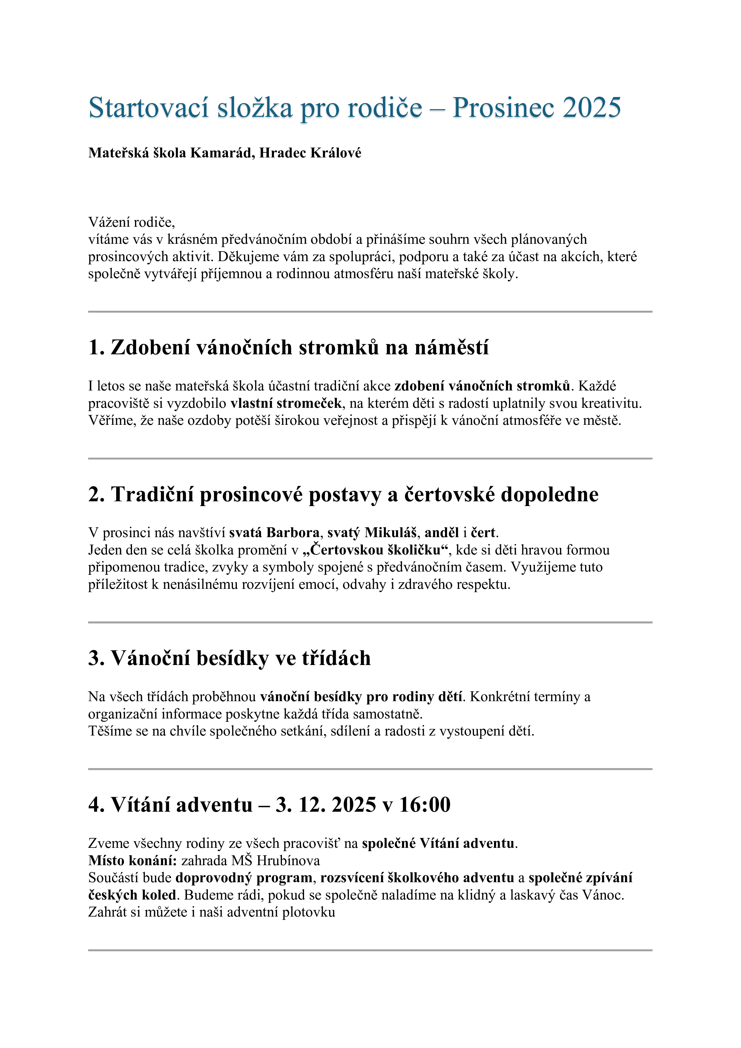Dovolte mi poděkovat Vám za důvěru a podporu, kterou nám v této době projevujete. Vaše spolupráce a trpělivost jsou pro nás velkou oporou. Společně se můžeme těšit na to, že se za rok vrátíme do nového, přívětivého prostředí, které dětem nabídne nejen moderní zázemí, ale také mnohem širší možnosti rozvoje.